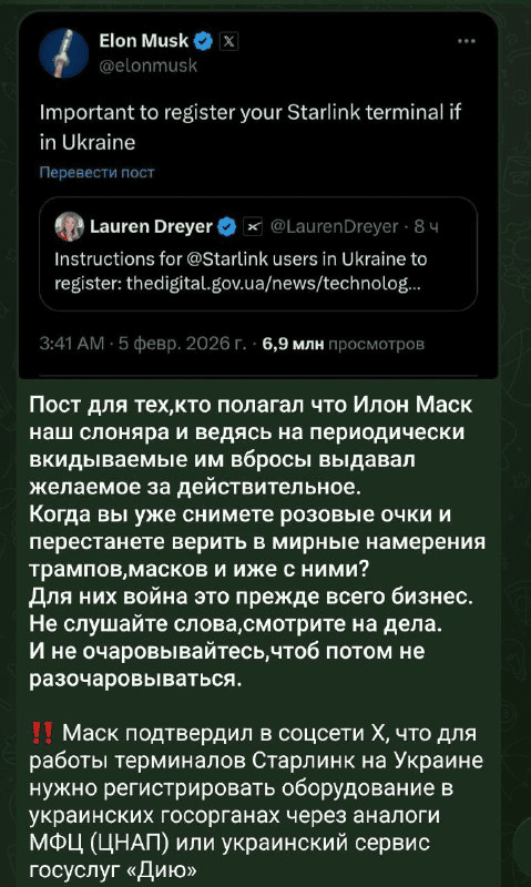 «Схоже, що кроки, яких ми вжили, щоб зупинити несанкціоноване використання Starlink Росією, спрацювали. Повідомте нас, чи потрібно зробити ще», — зазначив підприємець.