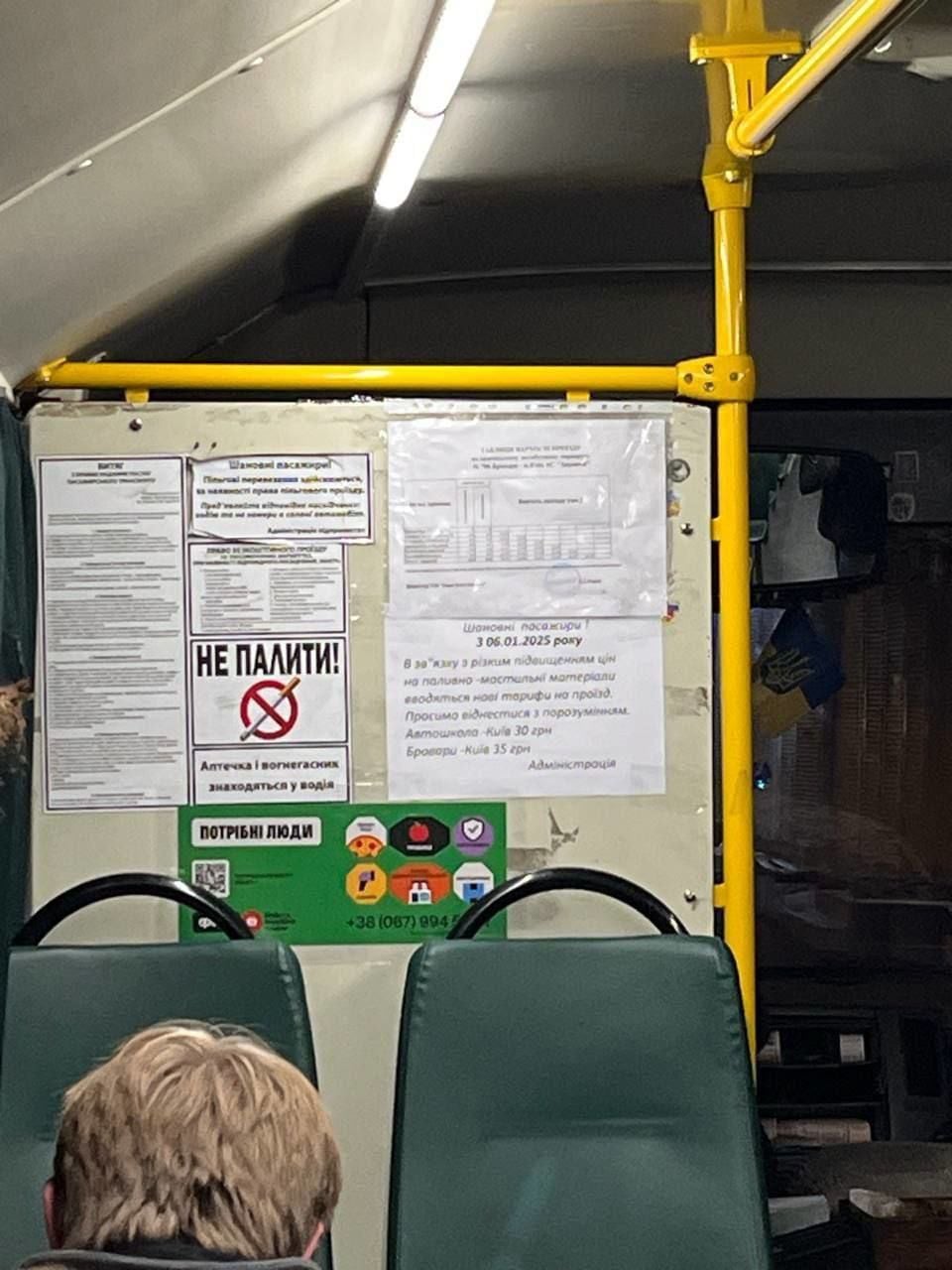 В об’явах йдеться, що вартість проїзду у маршрутках Київ – Бровари становитиме 35 гривень вже з 6 січня.