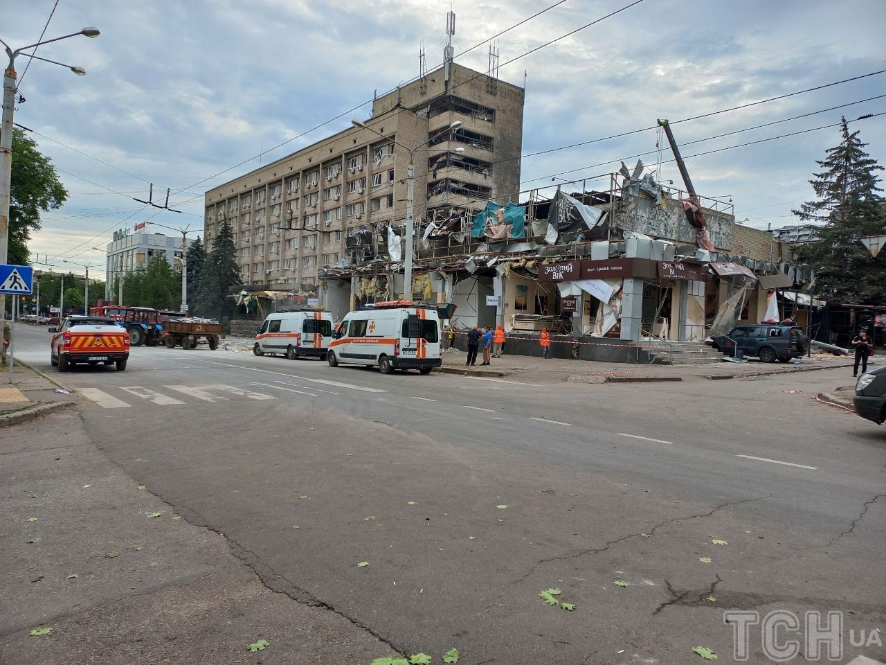 В епіцентрі вибуху також опинилися багатоквартирні будинки, торговельні приміщення, автомобілі, поштове відділення та інші споруди, в яких повилітали вікна та двері.