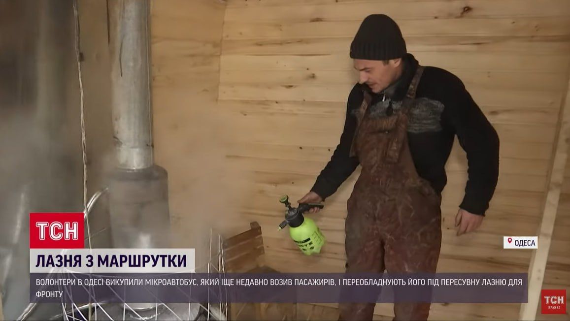 "Я телефонував своєму другові і він каже: "Коли вспіємо, то сухий душ, а сухий душ - це серветки". Я запитую: "Як думаєш, така лазня стане вам у нагоді?". Він каже: "Та це супер, це просто супер, жени її вже сюди", - розповідає волонтер Станіслав Маденс.