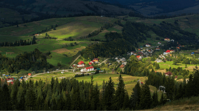Це чудовий варіант для бюджетного відпочинку в горах. Проживання для двох на шість ночей, як і в інших селищах, тут коштує від 4 200 грн. Водночас за 16 500 грн можна зняти номер у чотиризірковому готелі зі СПА — що недорого, порівняно з карпатськими курортами.