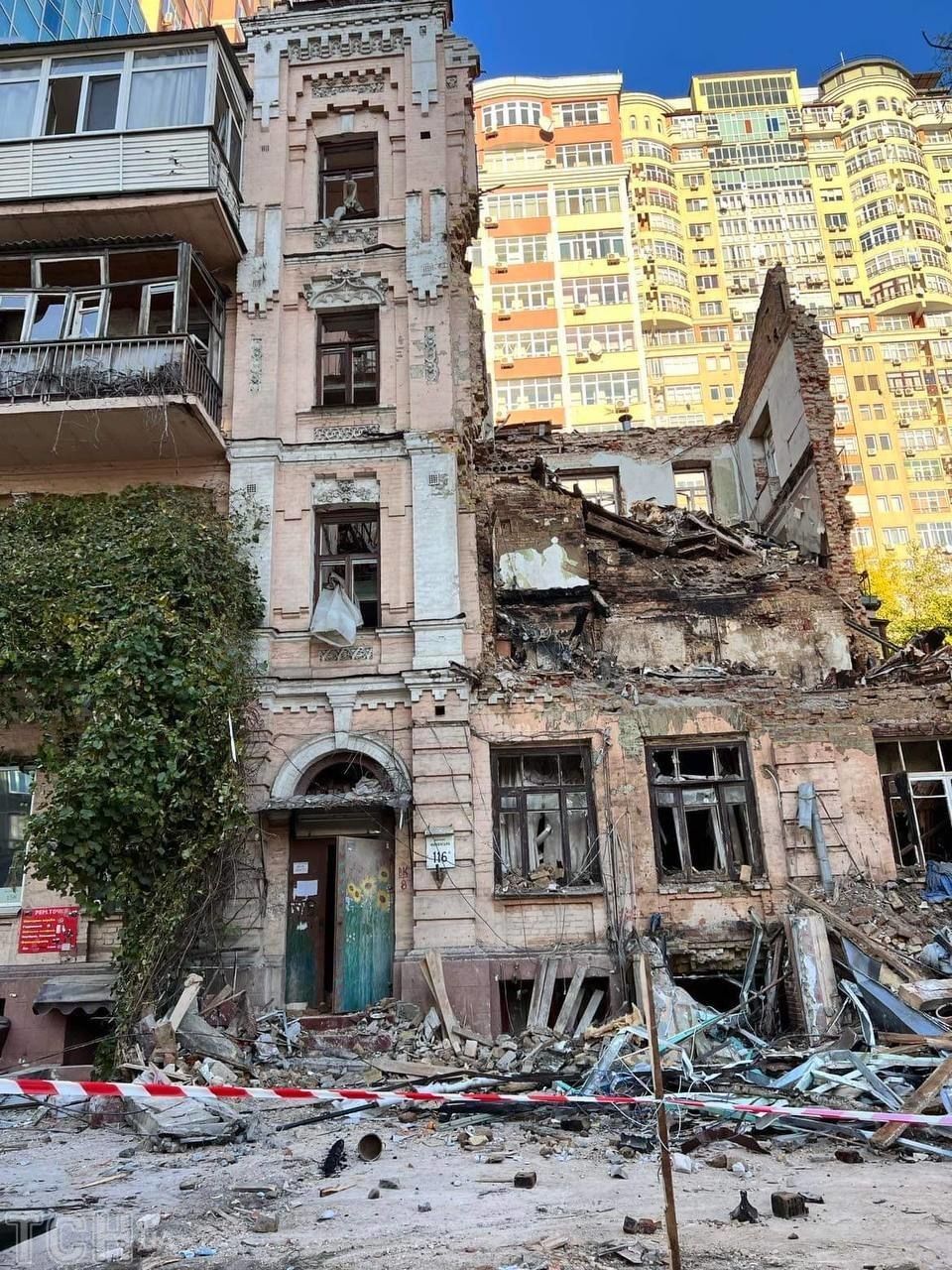 Наслідки ворожої атаки по Києву у жовтні 2022 року — зруйнований будинок на Жилянській