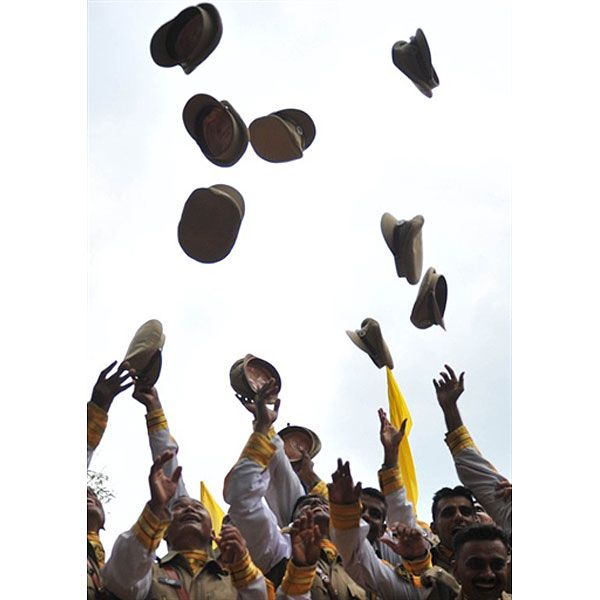 Індія, Хайдарабад. Члени Центральних сили промислової безпеки святкують після церемонії випуску у Національній академії промислової безпеки в Хайдарабаді. / © AFP