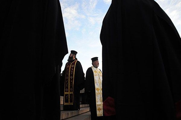 Болгарія, Софія. Болгарські православні священики проводять службу з нагоди прибуття мощів святого Іоанна Хрестителя до собору Олександра Невського у Софії. / © AFP
