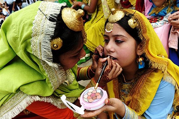 Танцюристки готуються до генеральної репетиції параду з нагоди річниці незалежності Індії у Армітсарі. 15 серпня Індія відсвяткує 63-тю річницю незалежності від Сполученого Королівства. / © AFP