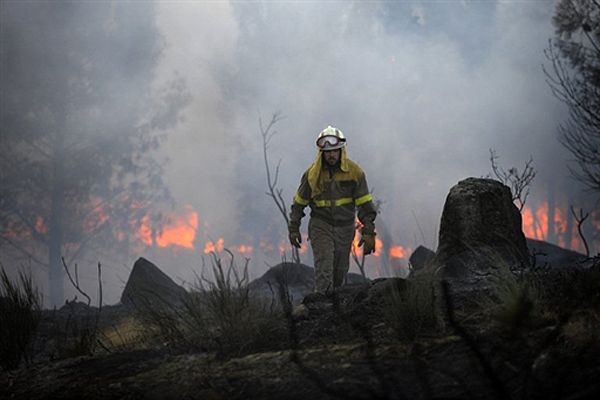 Чоловік йде по згорілому лісу у Масіде. Іспанію накрила хвиля лісових пожеж. / © AFP
