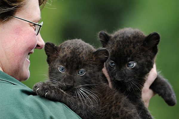 Відвідувачам Берлінського зоопарку вперше показали дитинчат чорної пантери Батургая та Ормілію, які народилися 2 липня. / © AFP