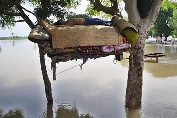 Жертва повені у Пакистані спить у гамаку над водою. За підрахунками ООН, під час повені загинули більше 1600 людей. / © AFP