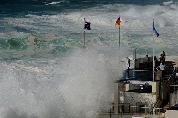Хвилі накривають будинок клубу на відомому сіднейському пляжі Бонді. Через штормове попередження цими вихідними будуть закриті усі пляжі Сіднея. / © AFP