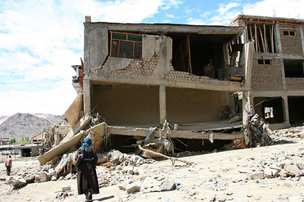 Жінка оглядає руїни свого будинку, який було зруйновано повінню, у Гімалаях, Індія. Тільки протягом 13 серпня з цього району були евакуйовані 172 туристи, які не могли вибратися з гірського району через повінь та зсуви ґрунту. Всього внаслідок повені загинули 185 людей. / © AFP