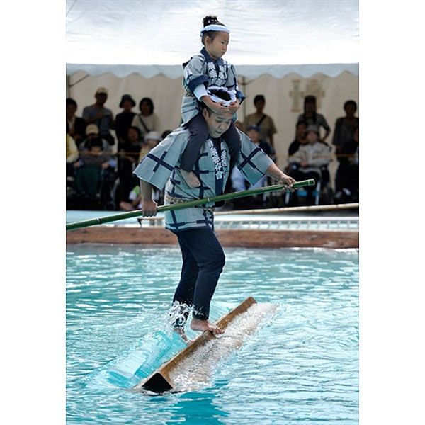 Японія, Токіо. Перевізник, член товариства "Кіба", виконує трюк на плаваючому брусі під час фестивалю в Токіо. Подібний "трюк" зазвичай виконували лісоруби під час своєї щоденної роботи за часів династії Едо (1603-1868 рр.), коли вони сплавлялись, стоячи на колодах. / © AFP