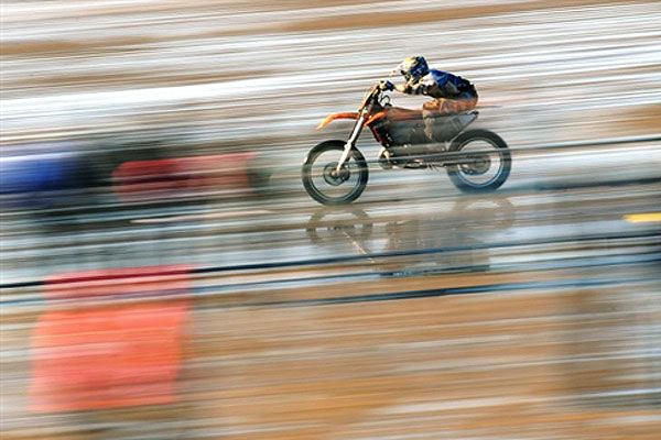 Великобританія, Вестон-Супер-Маре. Гонщик мчить вздовж берега під час тригодинної індивідуальної гонки на пляжних перегонах "RHL Weston beach race" у Вестон-Супер-Маре. У пляжних перегонах беруть участь мотоцикли ендуро, мотокросові гонщики і квадроцикли. / © AFP