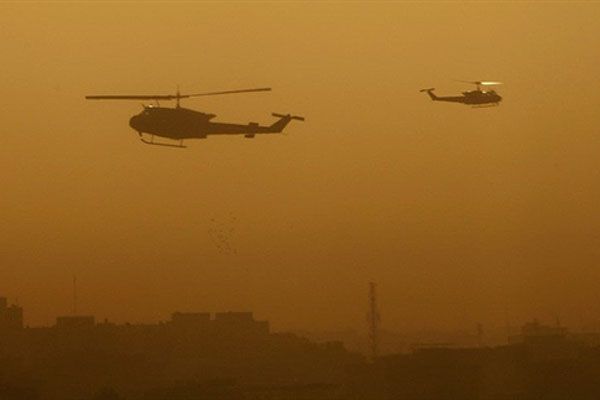 Ірак, Багдад. Військові вертольоти літають над зеленою зоною у Багдаді після гучного вибуху, який стався вранці 18 жовтня. Рівень насильства в Іраку різко зменшився з часів свого піку у 2006-2007 роках, але втрати від нападів повстанців та військових дій, як і раніше, залишаються частиною повсякденного життя. / © AFP
