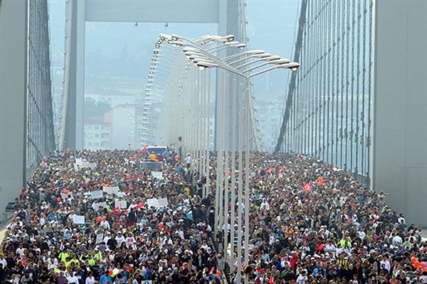 Туреччина, Стамбул. Учасники 32-го щорічного Євразійського марафону біжать через Босфорський міст, який з’єднує азіатську та європейську частині міста Стамбул. У щорічному марафоні взяли участь тисячі бігунів. / © AFP