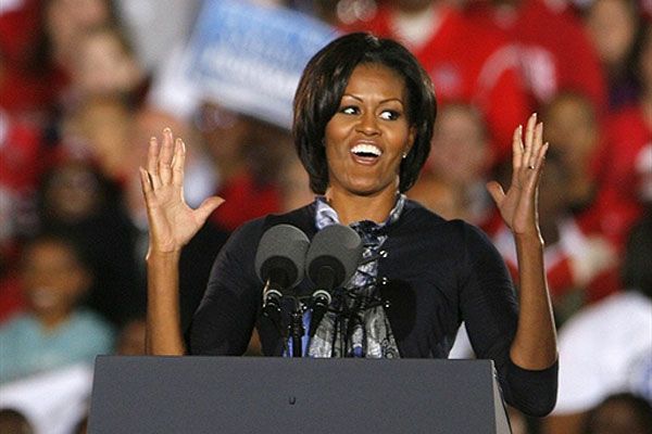 США, Колумбус, штат Огайо. Перша леді США Мішель Обама представляє президента США Барака Обаму перед мітингом в університеті штату Огайо. Мітинг, який відвідали близько 35 тисяч людей, став наймасовішим з тих, на яких виступав Обама з моменту своєї інавгурації. / © AFP