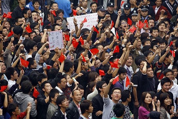 Китай, Ухань. Тисячі демонстрантів з китайськими національними прапорами вийшли на акцію протесту в місті Ухань. Вони виступили проти претензій Японії на низку спірних островів у Східно-Китайському морі. Дві найбільші економіки Азії, які є давніми суперниками, були втягнуті у ворожнечу, коли Японія арештувала капітана китайського траулера, який наблизився до спірних островів. / © AFP