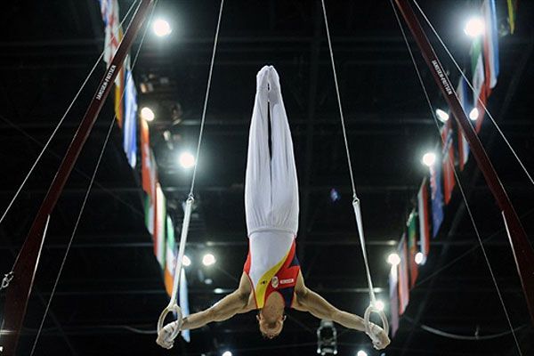 Нідерланди, Роттердам. Іспанський гімнаст Серхіо Муньос виконує вправу на кільцях під час кваліфікаційних змагань на 42-му Чемпіонаті світу зі спортивної гімнастики у Роттердамі. / © AFP