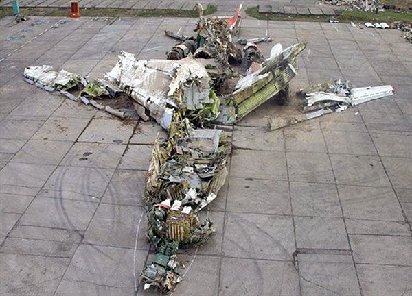 Росія, Москва. Міждержавний авіаційний комітет розповсюдив фотографії уламків Ту-154, на якому розбився польський президент Лех Качинський. Міждержавний авіаційний комітет підтвердив, що за кілька секунд до авіакатастрофі літака Качинського в кабіні знаходилися сторонні особи. Джерела називають директора дипломатичного протоколу МЗС та командувача Військово-Повітряних сил Польщі. / © AFP