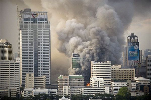 Таїланд, Бангкок. У столиці Таїланду опозиціонери підпалили будівлю телецентру. З палаючої будівлі рятувальники встигли евакуювати 100 людей. Пожежні повідомили про те, що палії вже встигли атакувати більше 20 об'єктів у столиці Таїланду, в тому числі банки і великі торговельні центри. / © AFP