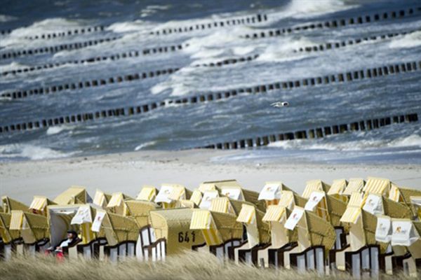 Німеччина, Цінгст. Чоловік відпочиває на узбережжі Балтійського моря у Цінгсті. Денна температура повітря на півночі Німеччини досі не перевищує 10 градусів. / © AFP