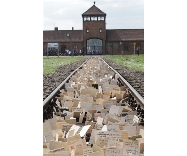 Польща, Освенцім. Таблички, з іменами загиблих у концентраційному таборі Аушвіц євреями, розставлені по дорозі до табору з нагоди щорічного Маршу живих. Марш живих вперше відбувся у 1988 році. За словами організаторів, більше половини учасників цьогорічного маршу не були євреями. / © AFP