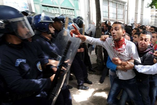 Алжир. Поранений протестувальник намагається поговорити з поліцейськими. У Алжирі спалахнули акції протесту студентів, незадоволених владою. На даний момент будь-які демонстрації на півночі Алжиру заборонені, але молодь все одно виходить на вулиці. / © AFP