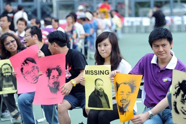Китай, Гонконг. Члени китайських правозахисних організацій виклали величезний ієрогліф "в’язниця" під час акції протесту з вимогою звільнення з-під варти видатного китайського художника Ай Вейвея. Вейвей, відомий своїми антикомуністичними поглядами, був заарештований 3 квітня. / © AFP