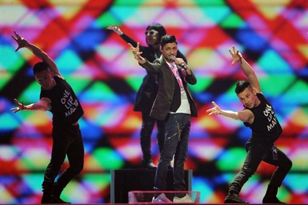 Німеччина, Дюссельдорф. Репетиція виступу у першому півфіналі конкурсу Євробачення Глена Велли з Мальти. Фінал Євробачення-2011 відбудеться 14 травня. / © AFP