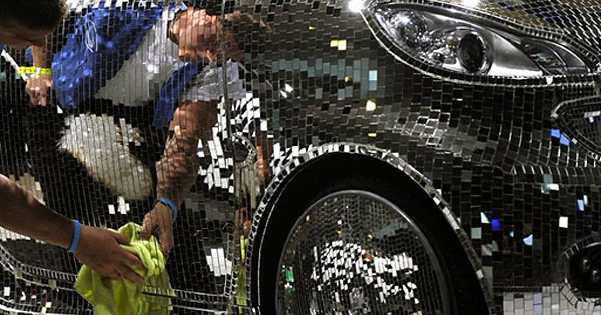 США, Нью-Йорк. Працівник готує дзеркальний електромобіль Smart до відкриття Міжнародного нью-йоркського автосалону в центрі Jacob Javits у Нью-Йорку. / © AFP