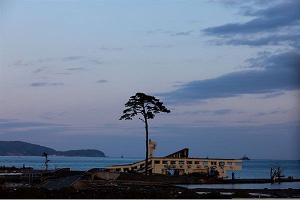 Японія, Рікузентаката. Сосна височить на уламками будинків у місті Рікузентаката, яке було зруйноване цунамі 11 березня 2011 року. Експорт в Японії скоротився вперше за 16 місяців після руйнівного землетрусу і цунамі. / © AFP