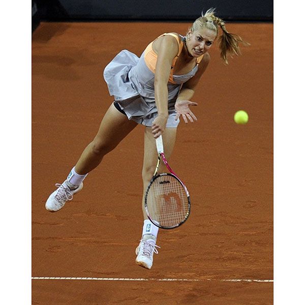 Німеччина, Штутгарт. Німецька тенісистка Сабіна Лісицькі відбиває подачу китаянки На Лі під час матчу другого кола тенісного турніру WTA на Гран-прі Porsche в Штутгарті. / © AFP