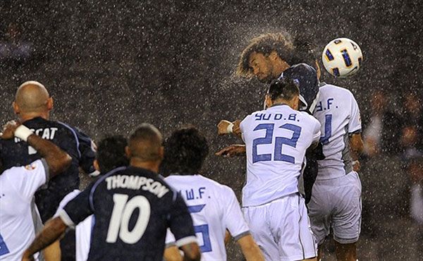 Австралія, Мельбурн. Гравець "Вікторі" (Мельбурн) Ісака Кернак-Оканя забиває м’яч під час матчу Ліги чемпіонів у Мельбурні. / © AFP