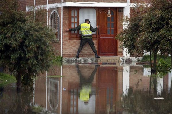 Колумбія, Чіа. Колумбійський поліцейський перебирається через вулицю міста, затоплену в результаті сильних дощів на півночі країни. / © AFP