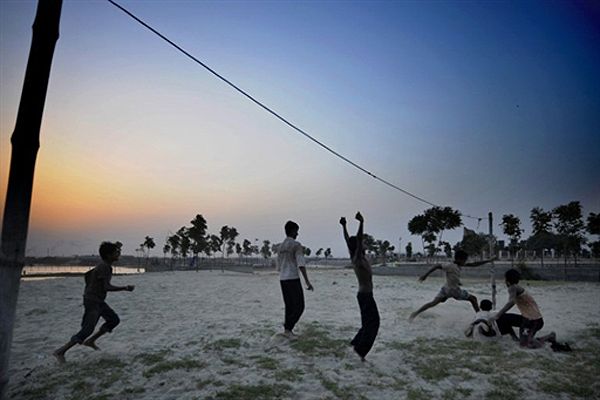 Дакка. Хлопчики грають у футбол на березі ріки Буріганги. Майже 40% населення Бангладеш живуть менше ніж на 1 долар на день. / © AFP