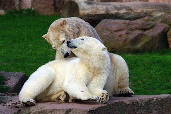 Білі ведмеді Флоке та Распутін граються у зоопарку Нюрнберга. Сьогодні обидва ведмеді "переїхали" до зоопарку Антиба, Франція. / © AFP