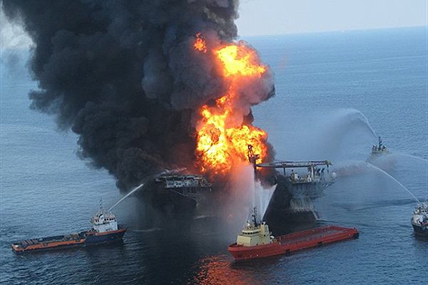Рятувальні судна намагаються загасити пожежу на нафтовій платформі Deeper Horizon поблизу Нового Орлеана, яка здійнялася в наслідок вибуху. Службі берегової охорони вдалося врятувати 115 співробітників платформи. Ще 11 людей вважаються зниклими без вісти. / © AFP