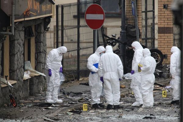 Експерти оглядаються місце вибуху автомобіля поблизу поліцейської дільниці у Армі, Північна Ірландія. Прем’єр-міністр Північної Ірландії назвав цей вибух "атакою боягузів". / © AFP