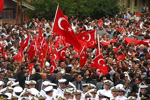 Туреччина, Елмадаг. Солдати, члени родини і друзі відвідують поховальну церемонію 17-річного Буса Срайяга у його рідному місті Елмадаг поблизу Анкари. 17-річний юнак був убитий разом із чотирма солдатами в результаті вибуху автобусу у Стамбулі, який, ймовірно, здійснили курдські повстанці. Турецька поліція вже затримала 27 осіб за підозрою у скоєнні смертоносного вибуху, а прем'єр-міністр країни засудив недостатню підтримку з боку Європи у боротьбі проти курдських сепаратистів. / © AFP
