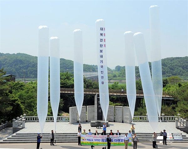 Південна Корея. Південнокорейські активісти підготували сім гігантських куль, щоб відіслати 20 тисяч листівок проти Пхеньяна до Північної Кореї. Акцію провели у місті на кордоні між Північною та Південною Кореями напередодні 60-ї річниці початку Корейської війни 1950-53 рр. / © AFP