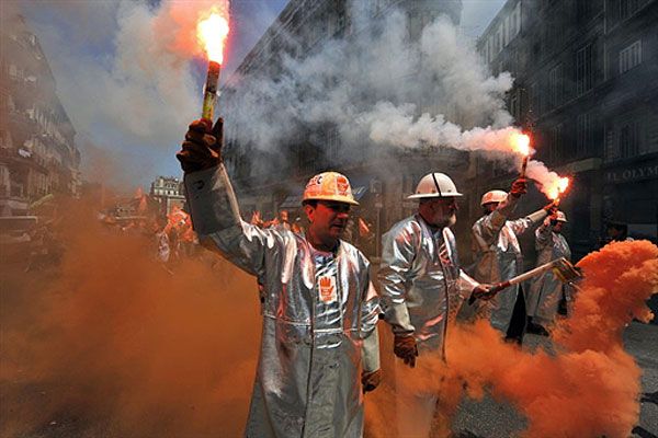 Франція, Марсель. Працівники металургійної промисловості взли участь у загальнонаціональній акції протесту і страйку, який організували профспілки у багатьох містах Франції. Демонстранти виступили проти капітальної пенсійної реформи, яка передбачає збільшення пенсійного віку з 60 до 62 років. / © AFP
