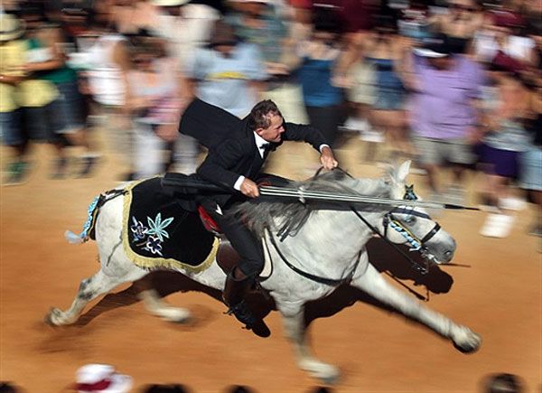 Іспанія. Вершник бере участь у традиційних святкуваннях на честь Святого Йоанна Хрестителя у місті Сьютаделла на Балеарському острові Менорка. / © AFP