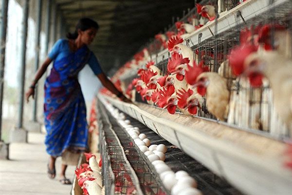 Індія, Хайдарабад. Індійська працівниця розподіляє корм для курей на птахофермі на околиці Хайдарабаду. Згідно з доповідями, індійська птахівнича галузь цього року вже додала близько 229 мільйонів доларів США до валового національного продукту, у поточному фінансовому році продовжується стійке зростання цієї галузі. / © AFP