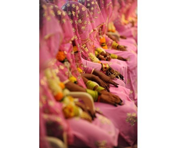 Мусульманські наречені чекають на початок церемонії масового весілля у Ахмедабаді. Сьогодні у мерії Ахмедабаду взяли шлюб одразу 65 молодих пар. / © AFP