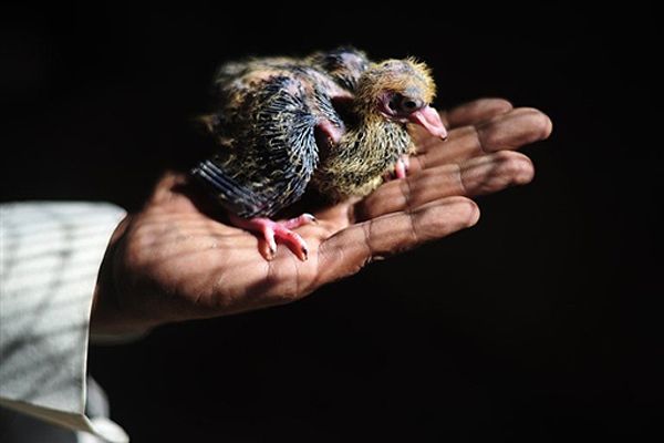 Чоловік тримає 10-денних пташенят голуба під час зустрічі клубу любителів птахів у Лахорі. Раніше голубів тримали майже у кожному домі Пакистані, оскільки ці птахи використовували як засіб зв’язку. / © AFP