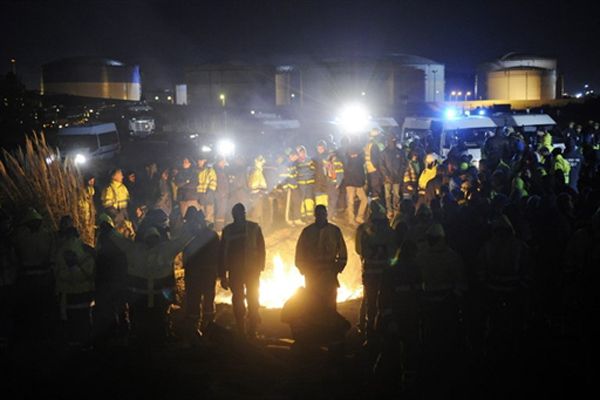 Учасники страйку проти пенсійної реформи заблокували в’їзд до нафтопереробного заводу Фос-сюр-Мері. 22 жовтня сенат Франції прийняв реформу. Через національні страйки у Франції виникла паливна криза. / © AFP