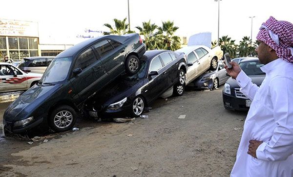 Саудівська Аравія, Джидда. Автомобілі, пошкоджені під час проливних дощів і повеней у місті Джидда. Саудівська влада проводить операцію з порятунку мешканців на узбережжі Червоного моря, де через повені у 2009 році загинули 123 людини. / © AFP