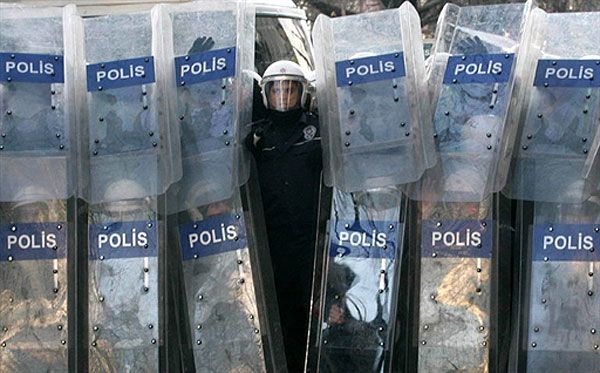 Туреччина, Анкара. Поліцейські вишикувались навпроти студентів, які провели акцію протесту проти ісламістського консервативного уряду в Анкарі. / © AFP