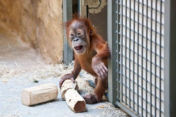 Німеччина, Дрезден. Дитинча орангутанга Дуран грає у своєму вольєрі у зоопарку Дрездена, Східна Німеччина. / © AFP