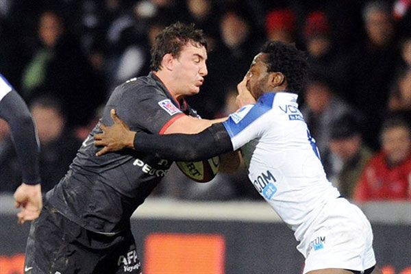 Франція, Тулуза. Луї Пікамоль ("Тулуза") б’є в обличчя гравця "Монпельє" Фюльжанса Уедраого під час матчу французького союзу регбі в Тулузі, на півдні Франції. / © AFP