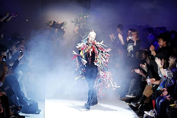 Нідерланди, Амстердам. Голландський дизайнер Бас Костерс вітає публіку після показу своєї колекції на міжнародному тижні моди у Амстердамі. / © AFP